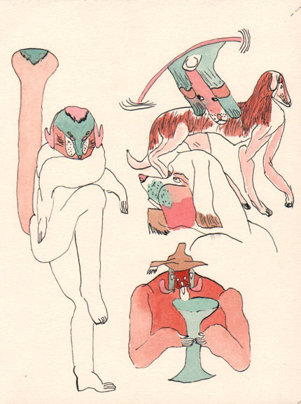 Kyle Field’s work has evolved from notebook cover style psychedelic drawings during classroom lectures at UCLA to full color exuberant and vibrant ink and watercolor drawings. His subject matter spans from fantasy to abstract, often using stereotypes of his fellow Californians as inspiration. Color, context and authenticity are highly considered and some drawings are even made intentionally naive, obsessing over the mark, and it’s authenticity.