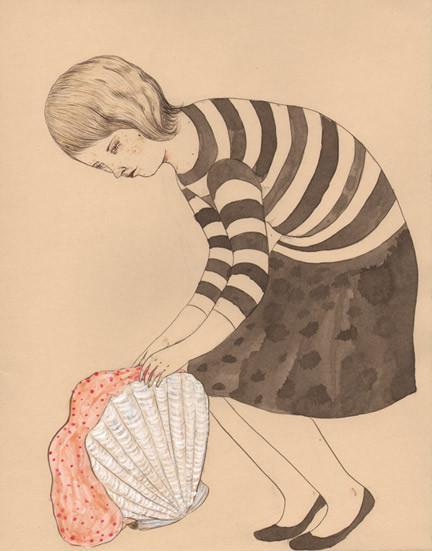 Drawing for An Unearthly Child, solo exhibition at Cinders Gallery by Allyson Mellberg, September 2010. Egg tempera, walnut ink, 8 x 10″, signed, framed.
