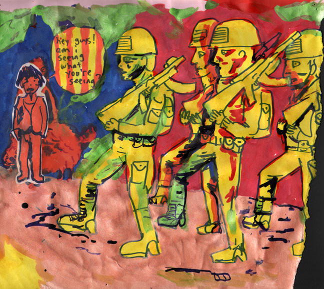 Drawing by Brian, paint and pen on paper, 13 x 12 inches, signed.